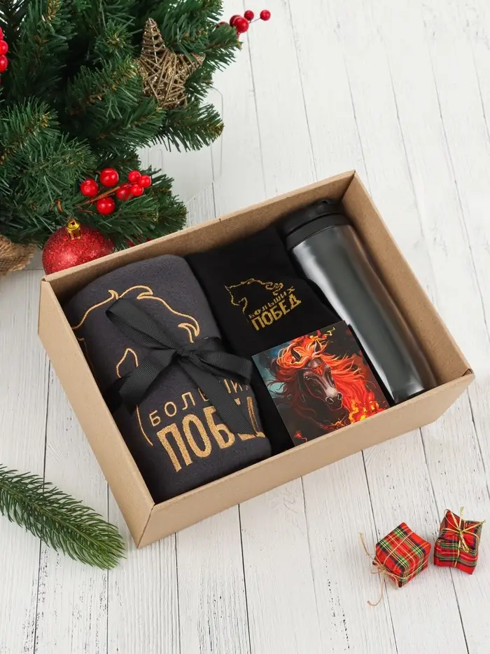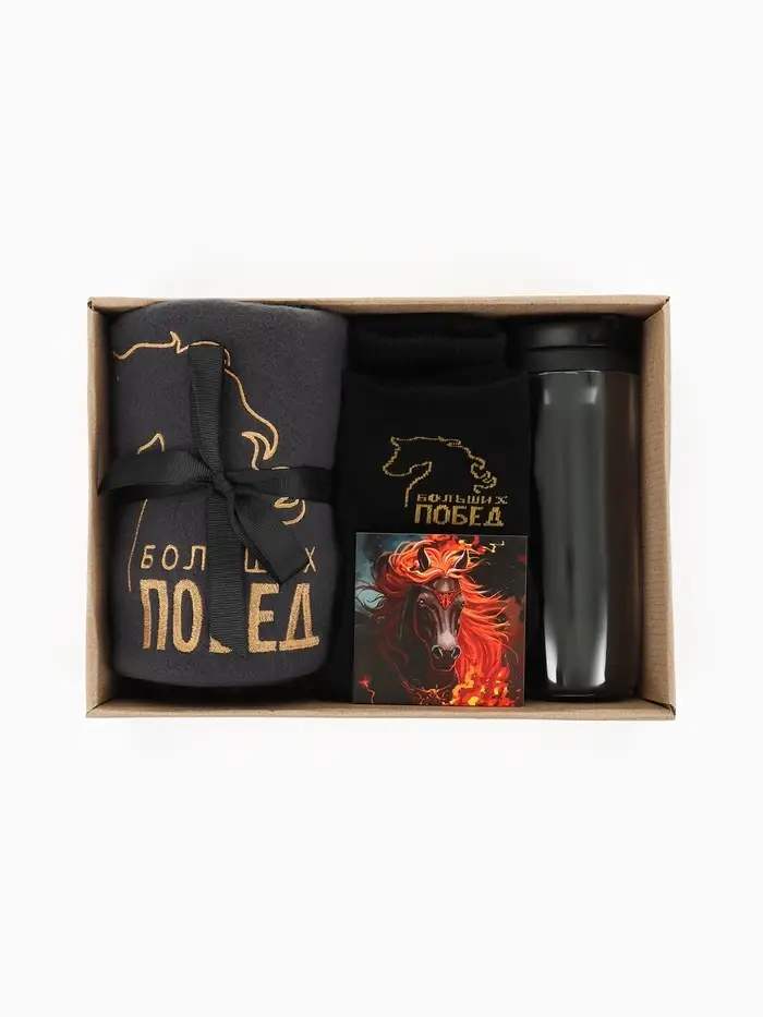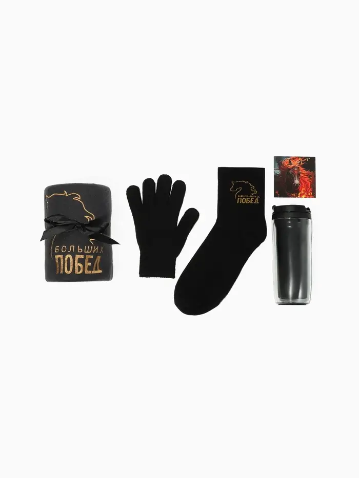Набор подарочный "Больших побед" плед, перчатки и аксессуары