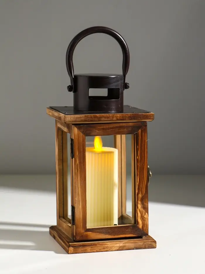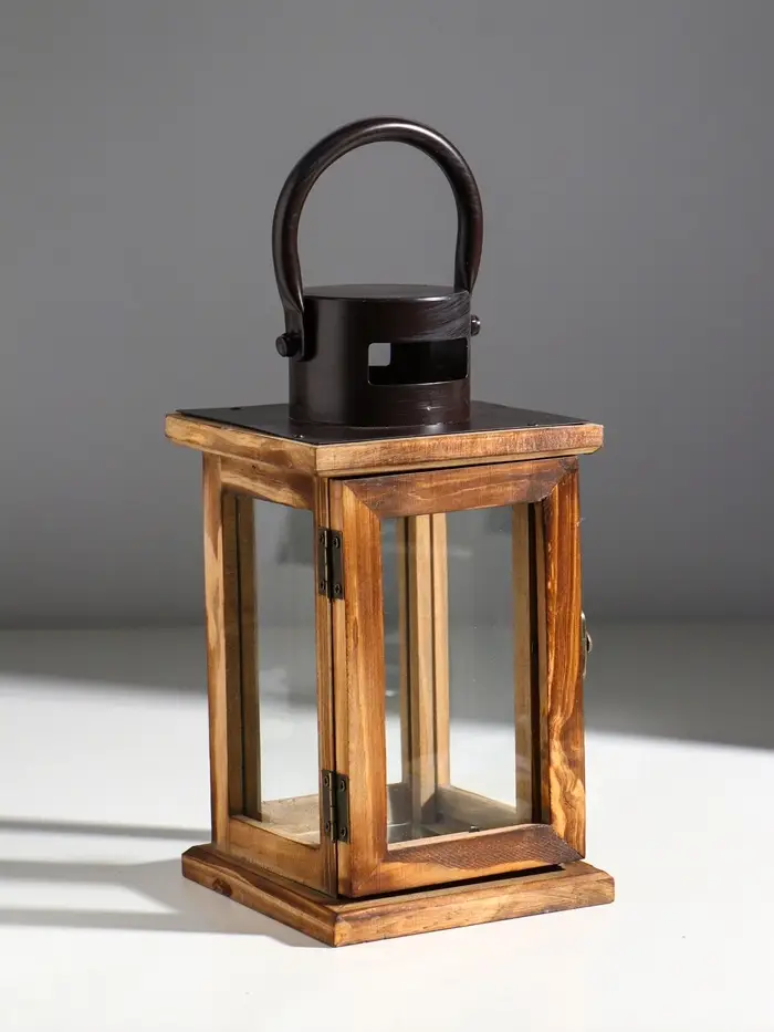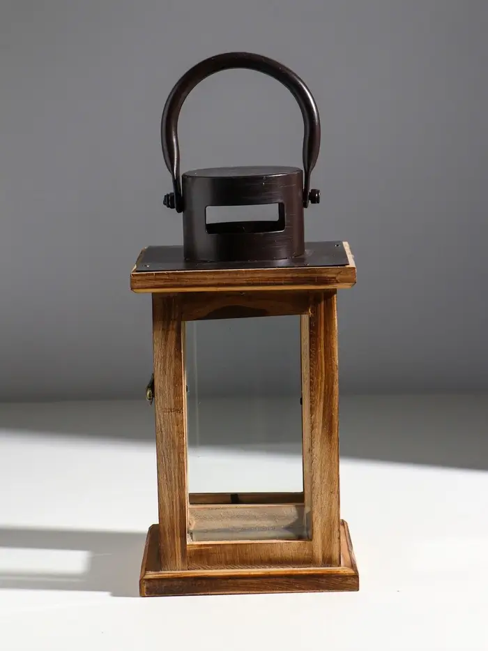 Подсвечник дерево на 1 свечу "Фонарь" серо-коричневый 11,5х11,5х22,5 см