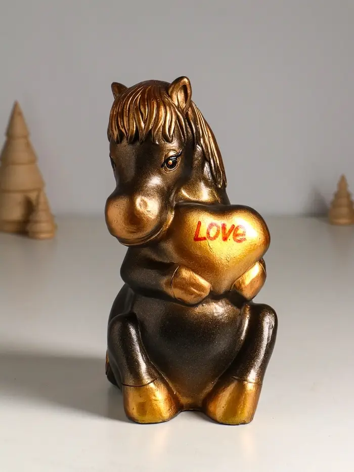 Копилка "Лошадь с сердцем" 23 см, бронзовый