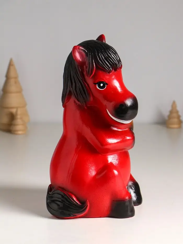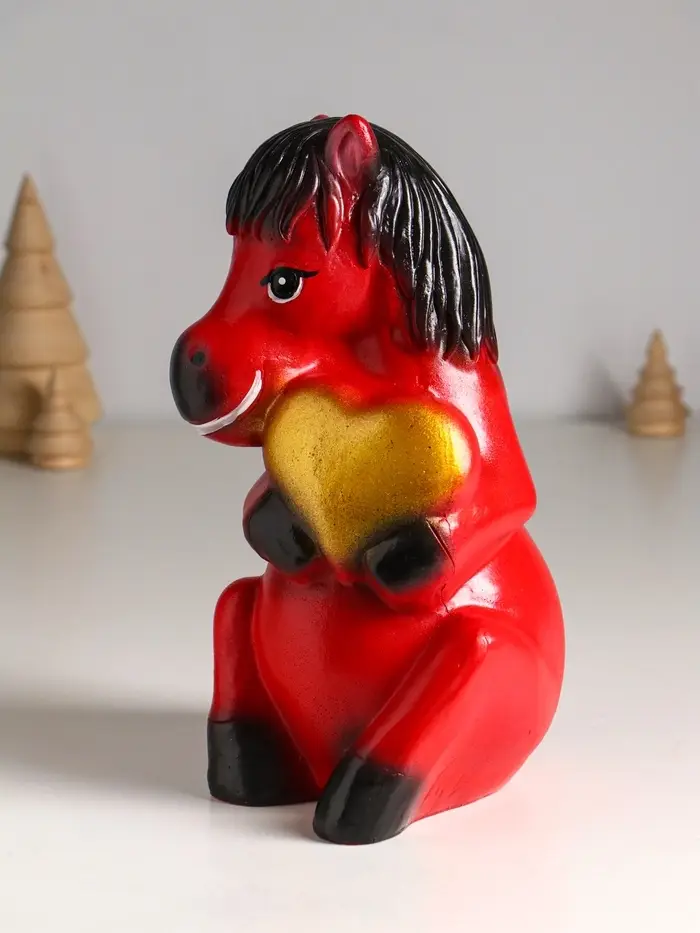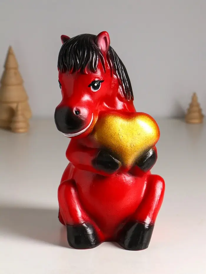 Копилка "Огненный конь с сердцем" 24 см, красный