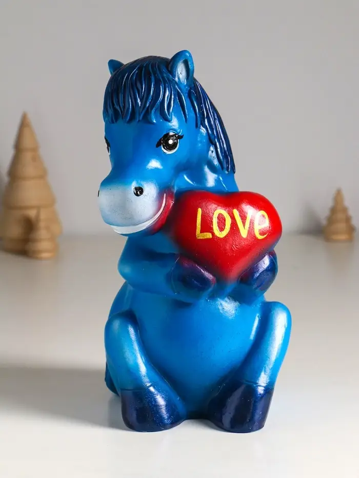 Копилка "Лошадь с сердцем" 23.5 см, синий