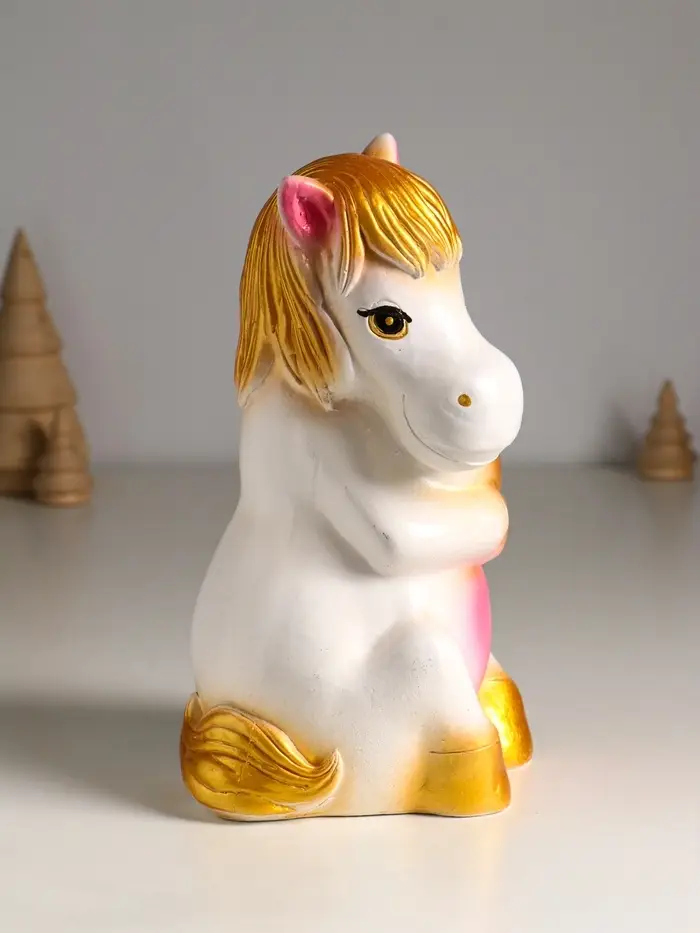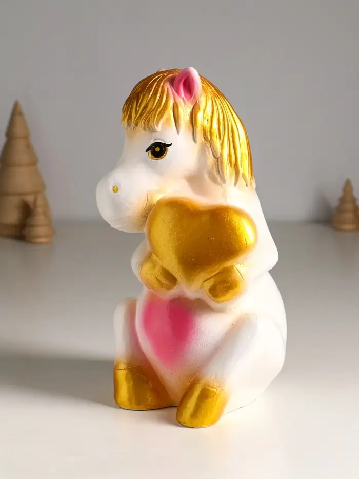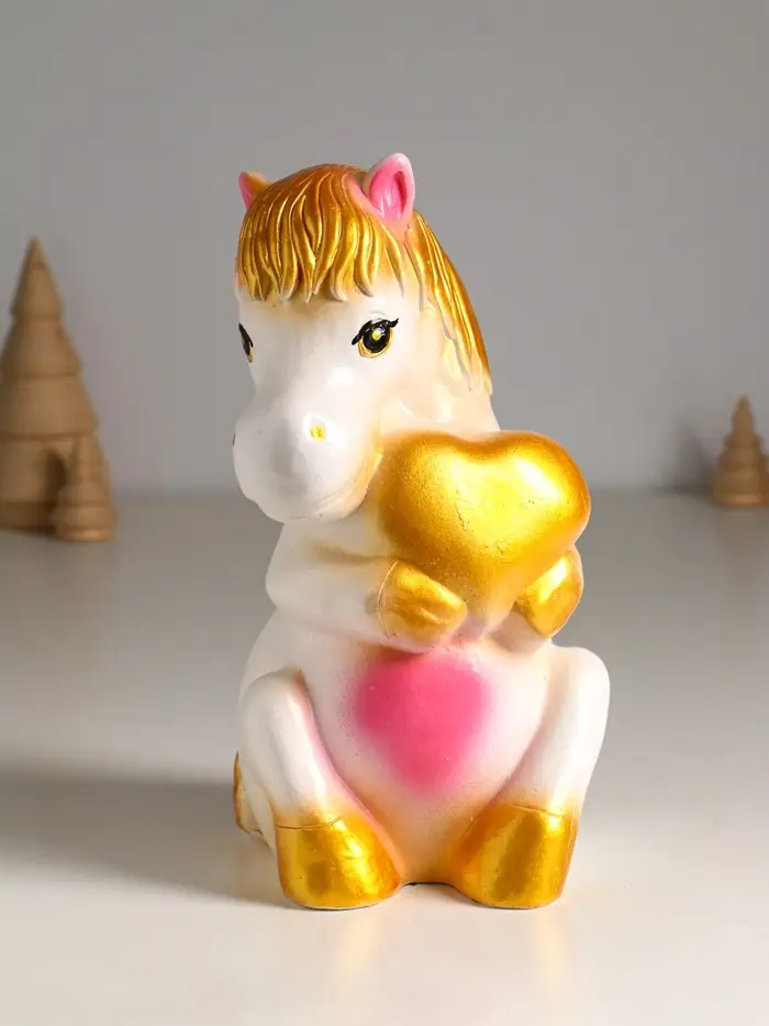 Копилка "Лошадь с сердцем" 23 см, белый с золотом