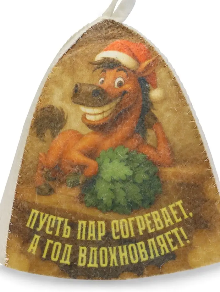 Шапка для бани с принтом "Пусть пар согревает. Новый год", светлая