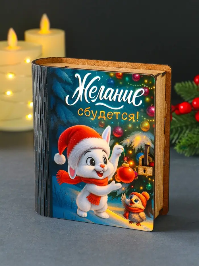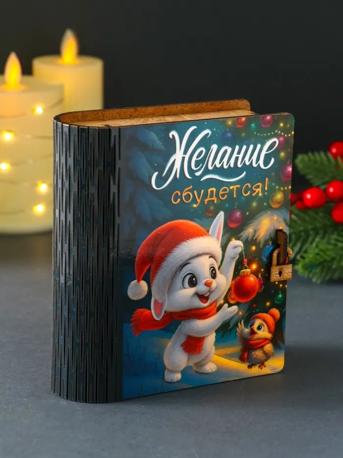Новогодняя копилка-шкатулка "Желание сбудется" 14х12х5 см