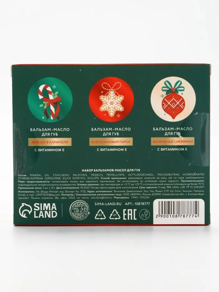 Бальзам - масло для губ Happy New Year , набор 3 шт х 10 г, URAL LAB