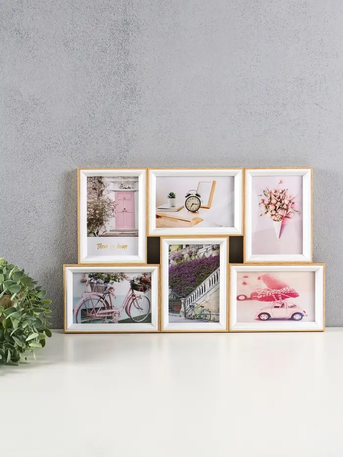 Фоторамка пластик на 6 фото 10х15 см "Двухцветная" бук и белый 29,5х46,5х2 см