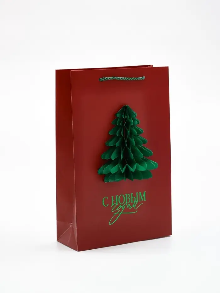 Пакет подарочный «Новый год», с бумажной игрушкой, елка, 25,5 × 30 × 9 см