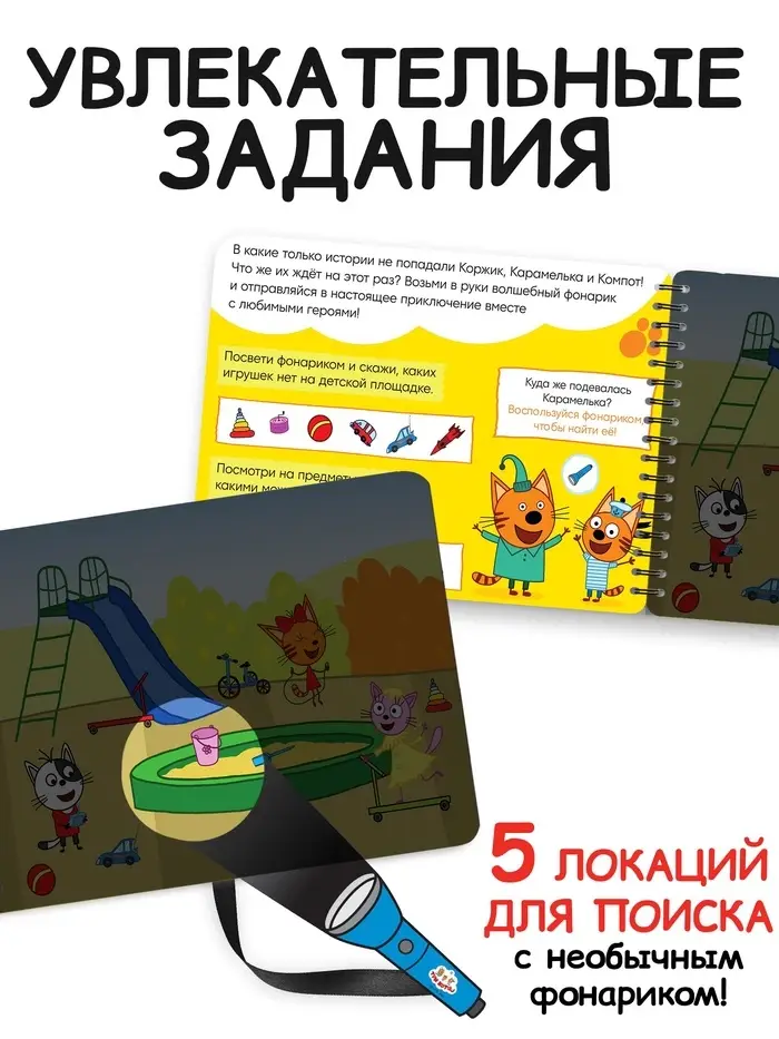 Секретная книга с волшебным фонариком "Озорные котята", 22 стр., Три кота