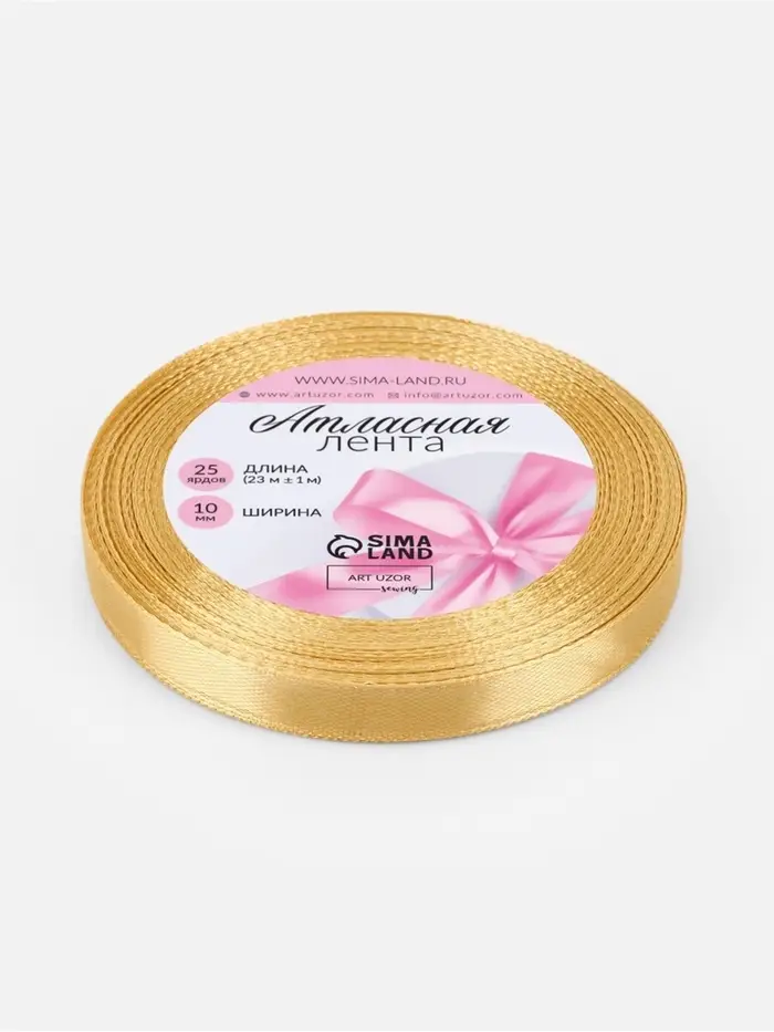 Лента атласная, 10 мм, 23±1 м, золотисто-бежевая №186
