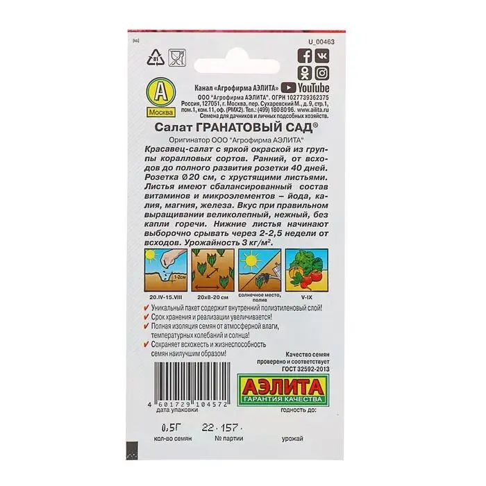 Семена Салат "Гранатовый сад" листовой, 0,5 г