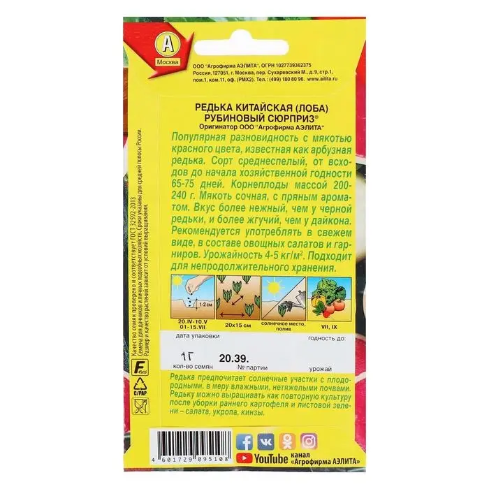 Семена Редька китайская "Рубиновый сюрприз", 1 г