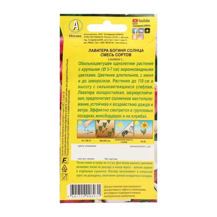Семена цветов Лаватера "Богиня солнца", смесь окрасок, О, 0,3 г