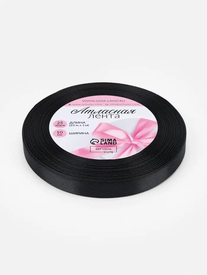 Лента атласная, 10 мм × 23 ± 1 м, цвет чёрный №39