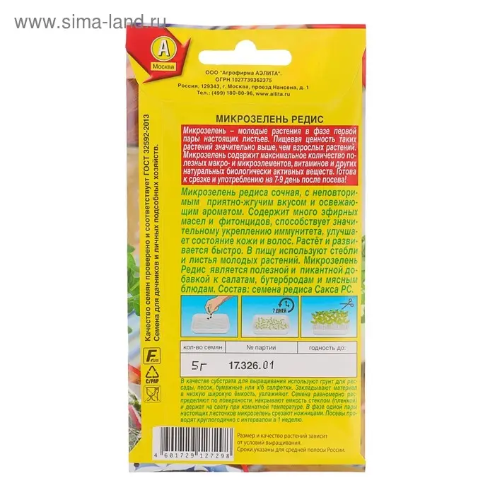 Микрозелень – молодые растения в фазе первой пары настоящих листьев. Пищевая ценность таких растений значительно выше, чем взрослых растений. Микрозелень содержит максимальное количество полезных макро- и микроэлементов, витаминов и других натуральных биологически активных веществ. Готова к срезке и употреблению на 7-9 день после посева!