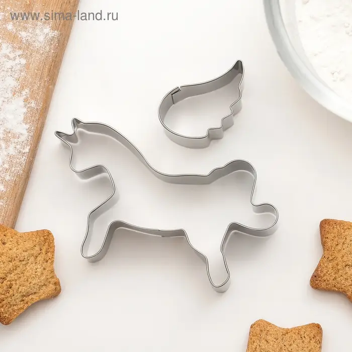 Набор форм для печенья Доляна «Единорог», 2 шт, 9×7×2 см, цвет серебристый