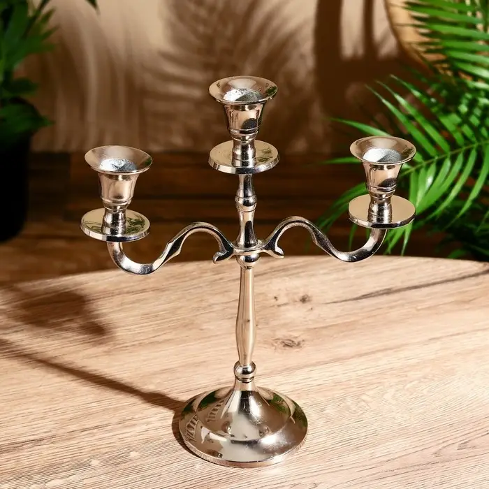 Подсвечник алюминий "Власть" на 3 свечи 9х22х26 см