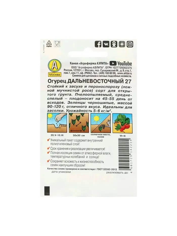 Семена огурца "Дальневосточный 27", "Лидер", 20 шт.