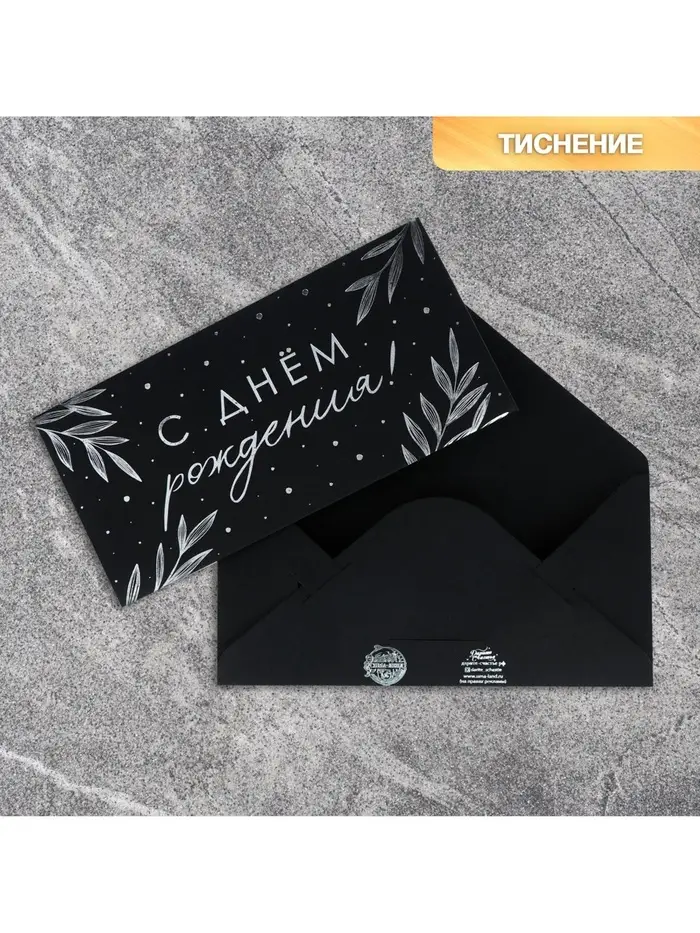 Конверт для денег «Веточки», на черном крафте, тиснение, 16,5 х 8 см