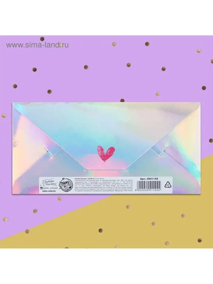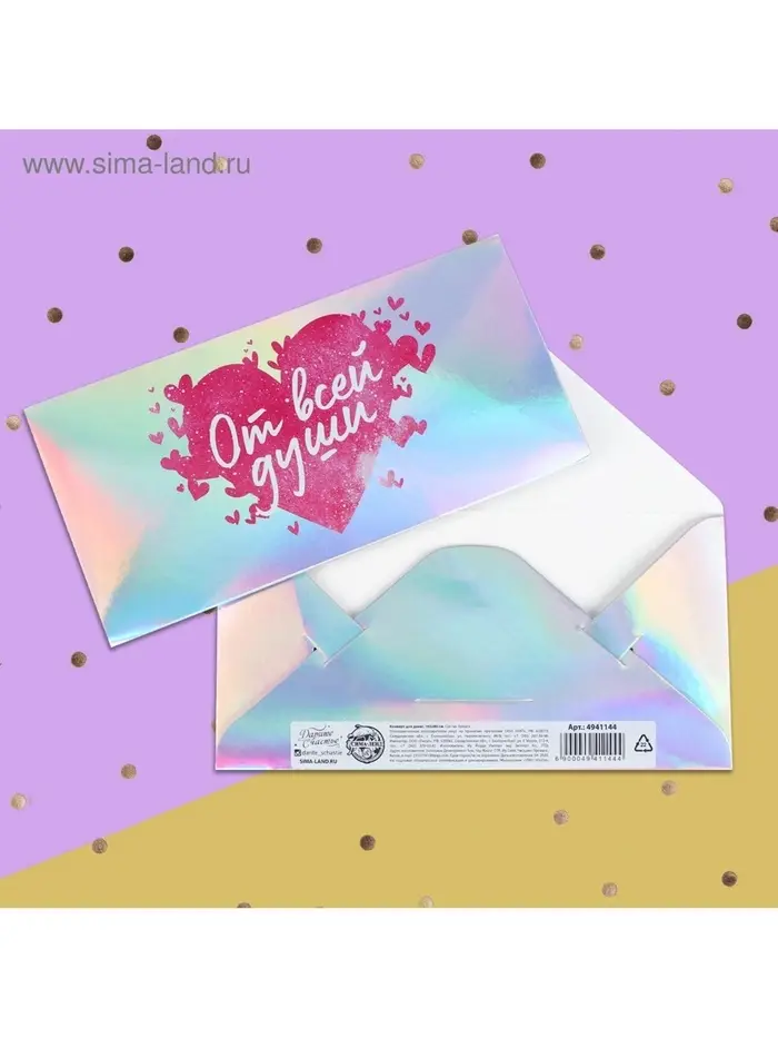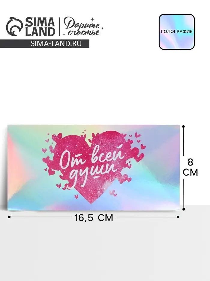 Конверт для денег «От всей души», голография, 16.5×8 см
