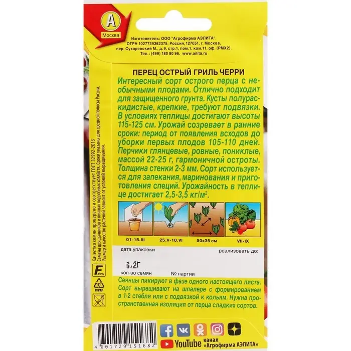 Семена Перец острый "Гриль черри", ц/п, 0,2 г