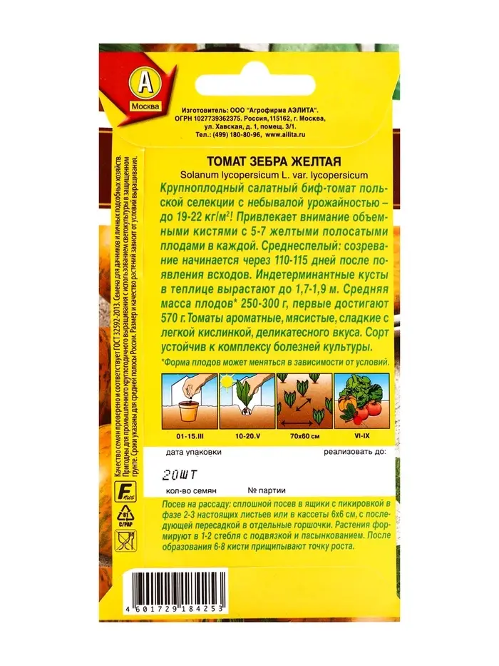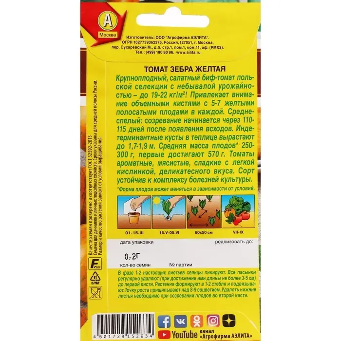 Семена Томат "Зебра желтая", ц/п, 0,2 г