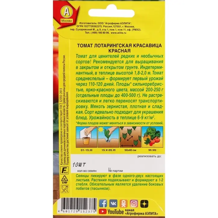 Семена Томат «Лотарингская красавица», красная, 10 шт., «АЭЛИТА»