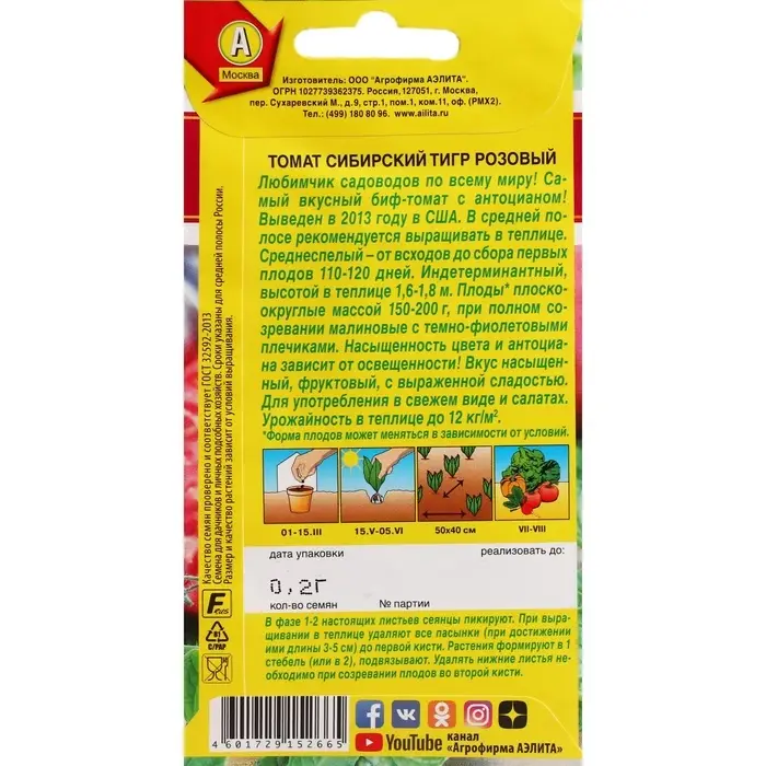 Семена Томат «Сибирский тигр», розовый, индетерминантный, высокорослый, 0.2 г, «АЭЛИТА»