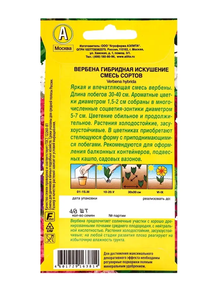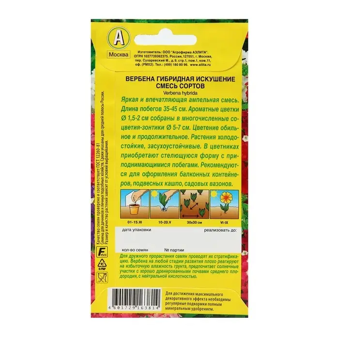 Семена Цветов Вербена "Искушение", смесь сортов, ц/п, 0,1 г