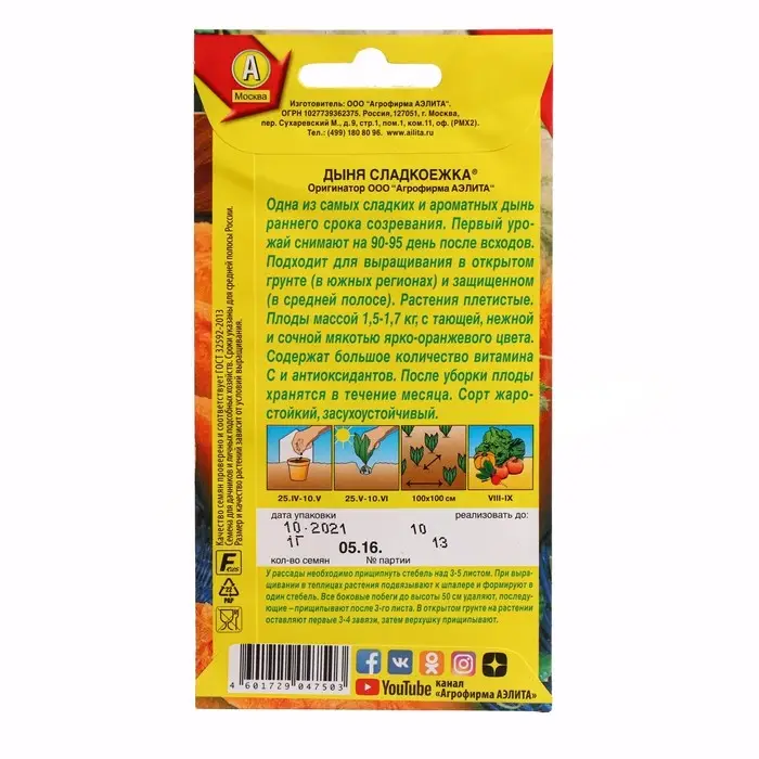 Семена Дыня "Сладкоежка", ц/п, 1 г