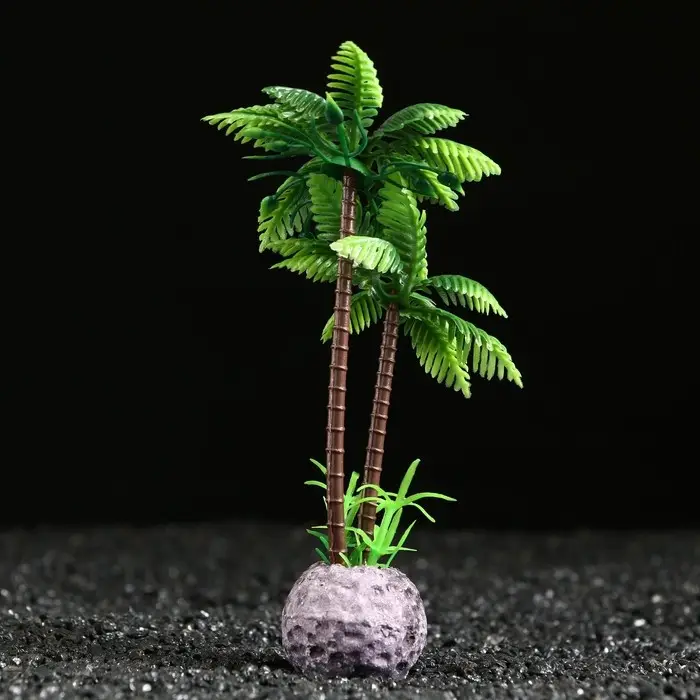 Искусственная пальма — это элемент декора для аквариумов, созданный для того, чтобы добавить экзотическую атмосферу и сделать водное пространство более визуально привлекательным. Эта модель изготовлена из качественных материалов, безопасных для рыб и других обитателей аквариума, и не требует особого ухода.