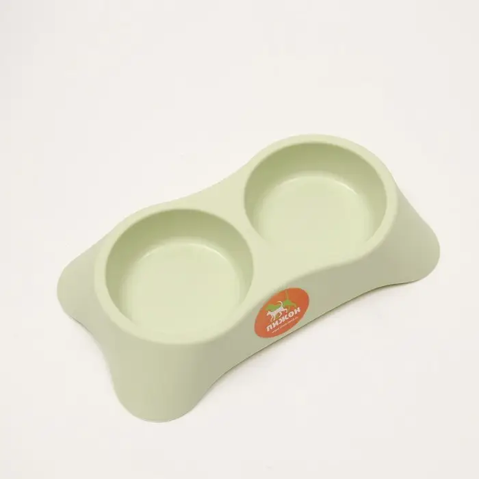 Миска двойная пластиковая 2 х 160 мл, 23 х 13 х 4 см, зелёная