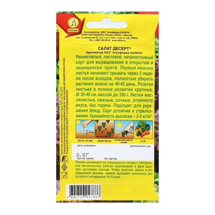 Семена Салат "Бутерброд" листовой, 0,5 г