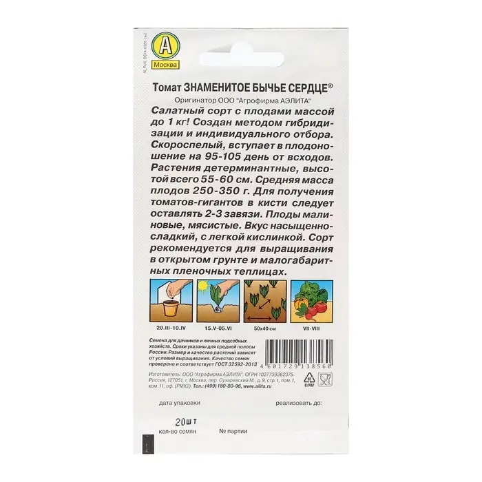 Семена Томат "Знаменитое бычье сердце", 20 шт