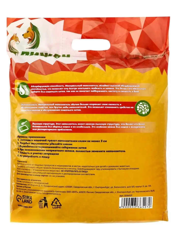 Благодаря своей способности удерживать запахи, минеральный впитывающий наполнитель помогает поддерживать свежесть в туалете вашего питомца. Это создает более комфортные условия как для животного, так и для вас.