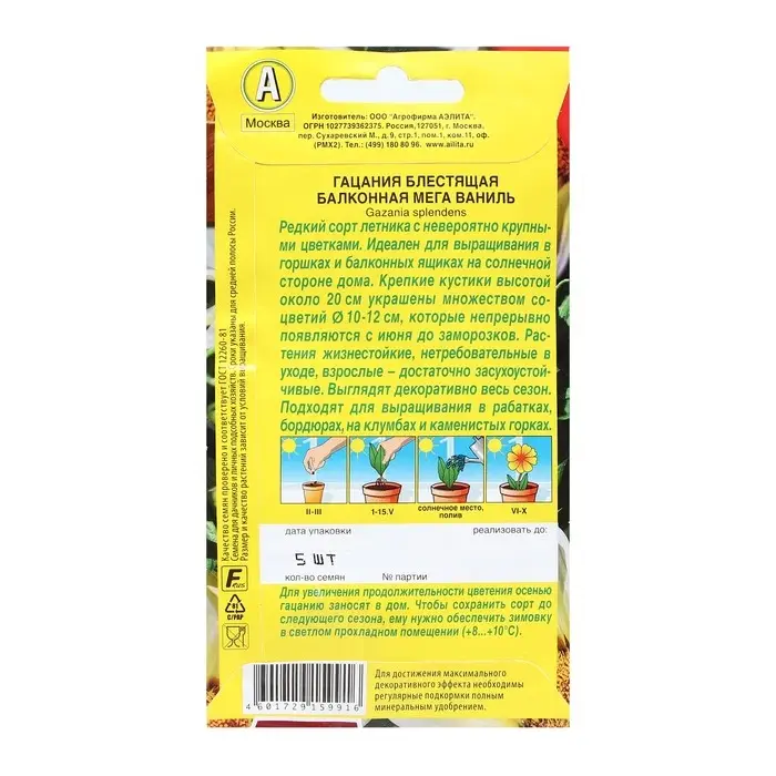 Семена Цветов Гацания "Балконная мега ваниль", 4 шт