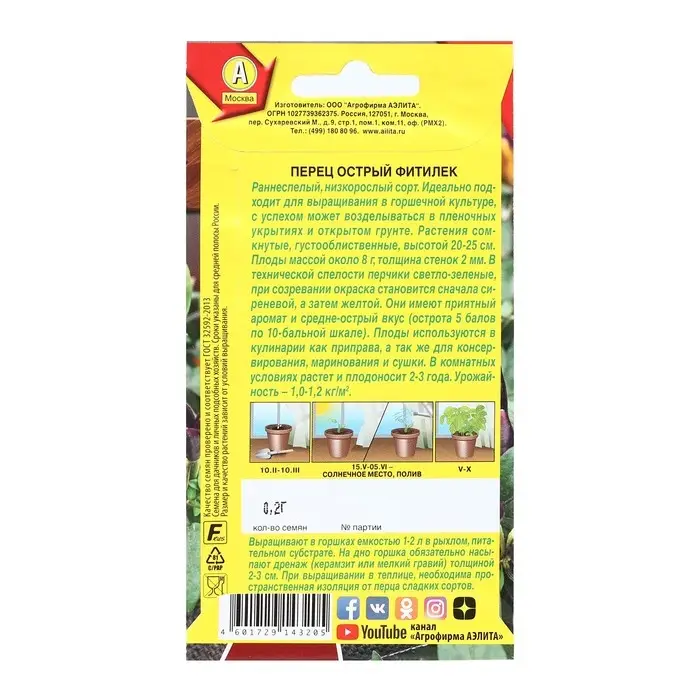 Семена Перец острый "Фитилек", Урожай дома, 0,2 г