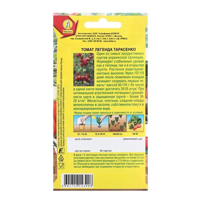 Семена Томат Легенда Тарасенко Ср Народный любимец Ц/П 20шт