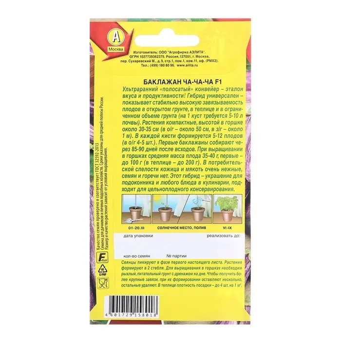 Семена Баклажан "Ча-ча-ча", F1, 15 шт