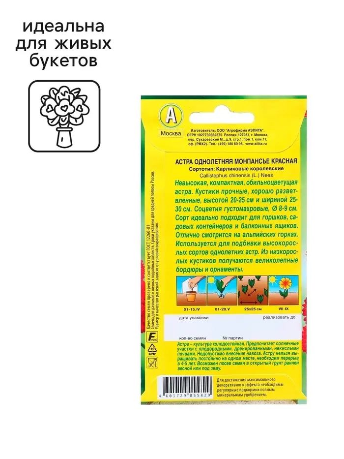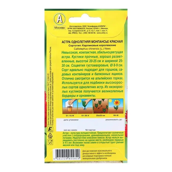 Семена цветов Астра "Седая Дама", красная, карликовая, Сем. Алт, ц/п, 0,1 г