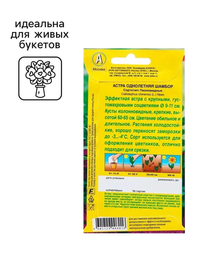 Семена Цветов Астра Сиринга Белоснежные Облака, 0,1 г