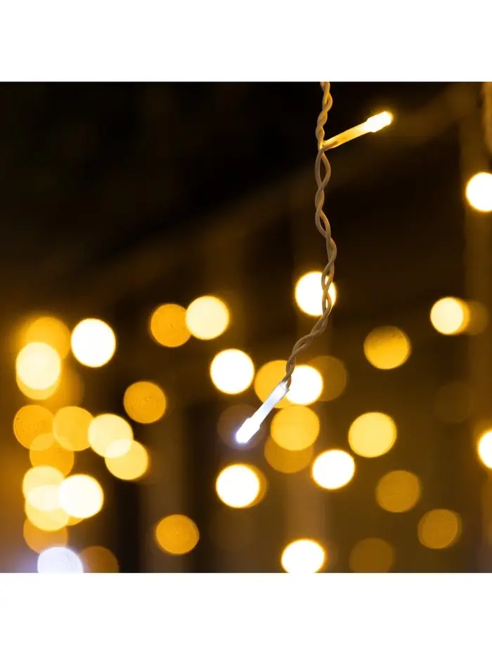 Гирлянда «Бахрома» 12 × 0.7 м, IP44, УМС, белая нить, 240 LED, свечение тёплое белое, мерцание, 220 В