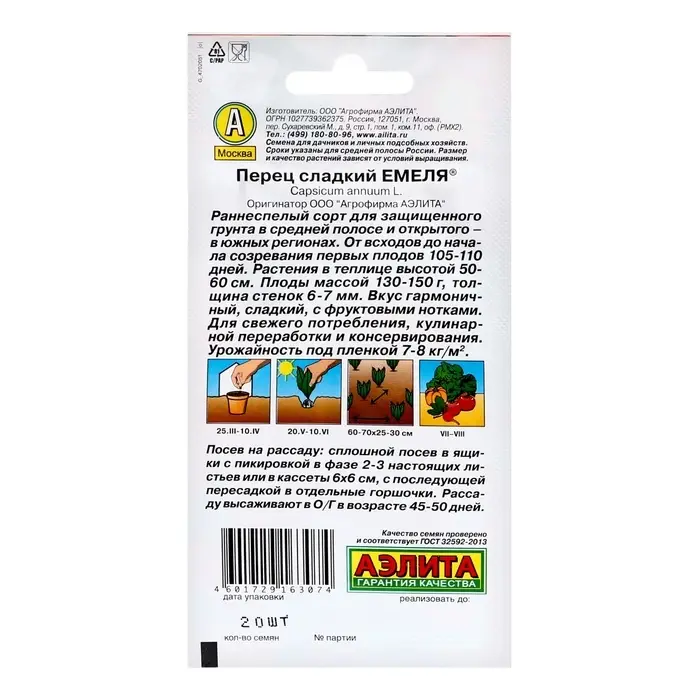 Семена сладкого перца «Емеля» - ваш идеальный выбор для тех, кто хочет наслаждаться ярким урожаем вкусных и сочных оранжевых плодов. Высаживайте эти семена на открытом грунте и получите сладкие перцы, которые добавят насыщенности в любые блюда.