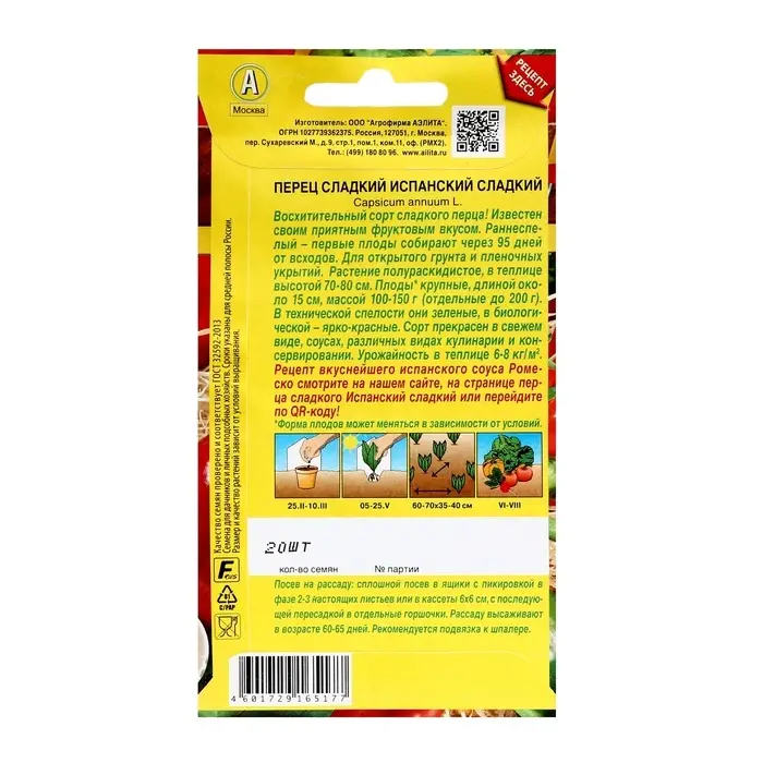 Семена Перец сладкий "Испанский сладкий", ц/п, 20 шт