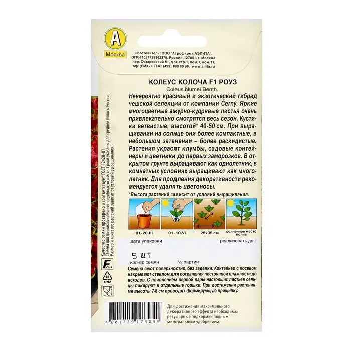 Семена цветов Колеус "Колоча" F1 роуз, ц/п, 5 шт