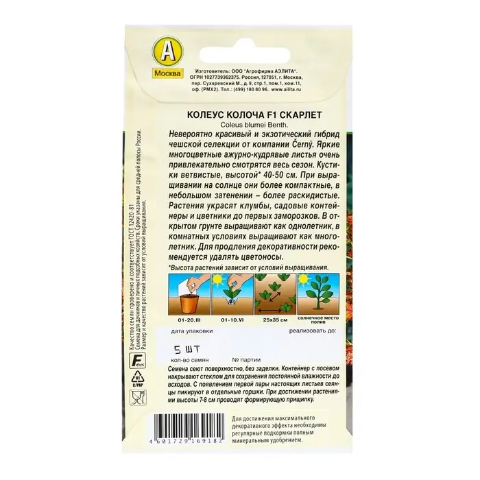 Семена цветов Колеус "Колоча" F1 скарлет, ц/п, 5 шт