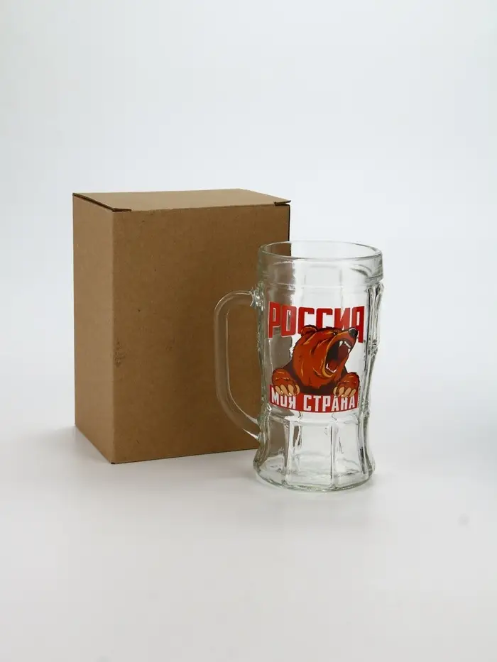 Кружка пивная стеклянная «Россия, моя страна», 500 мл