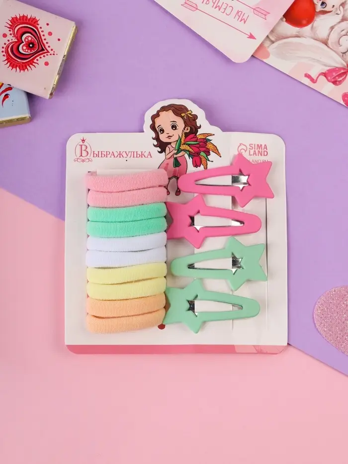 Набор для волос «Аделия», 10 резинок 3 см, 4 невидимки 3.5 см, звезда колор, МИКС