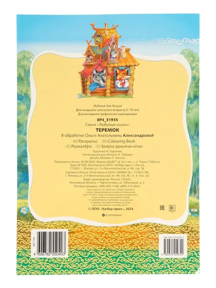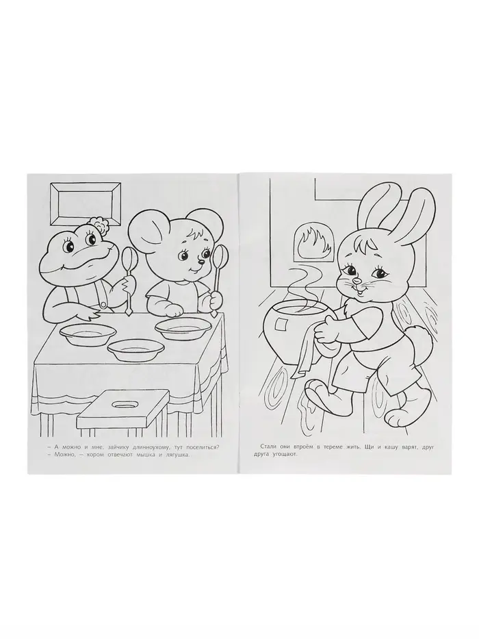 Раскраска «Теремок» — это 8 страниц формата А4 с классическими изображениями, вдохновлёнными русской народной сказкой. Простой и удобный формат делает её идеальной для детей от 7 лет.