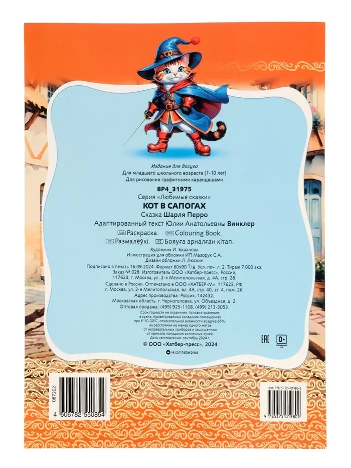 Раскраска «Кот в сапога» — это 8 страниц формата А4 с классическими изображениями, вдохновлёнными народной сказкой. Простой и удобный формат делает её идеальной для детей от 7 лет.