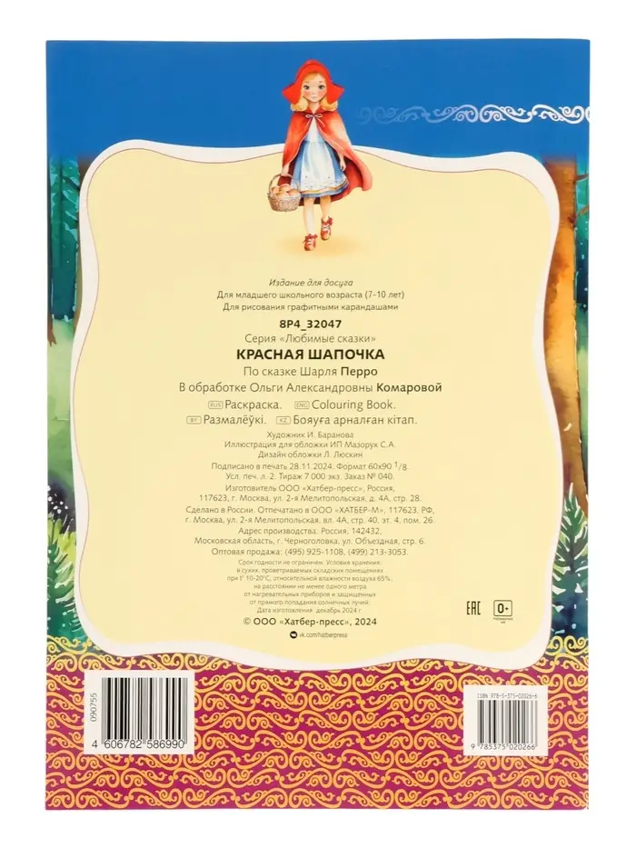 Раскраска «Красная шапочка», 8 стр., А4